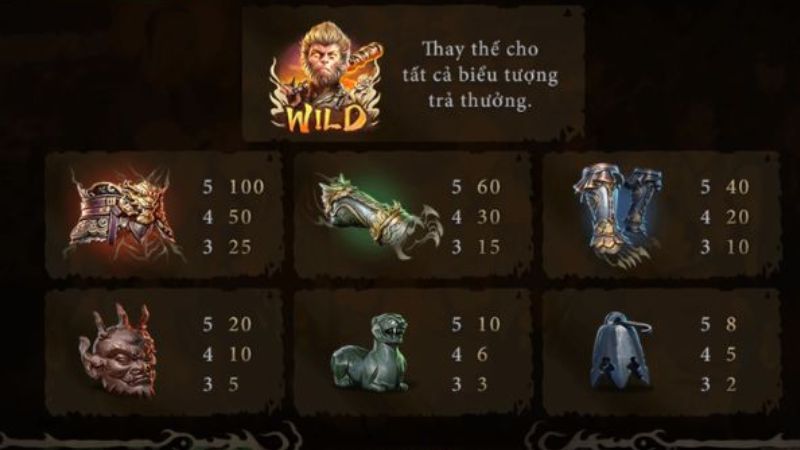- Ngộ Không (Wild): Thay thế mọi biểu tượng trừ Scatter, giúp chuỗi thắng dễ kích hoạt.