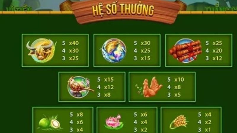 - Biểu tượng thúng gạo: Thưởng mức trung bình, dễ xuất hiện, hỗ trợ cộng dồn điểm nhanh.